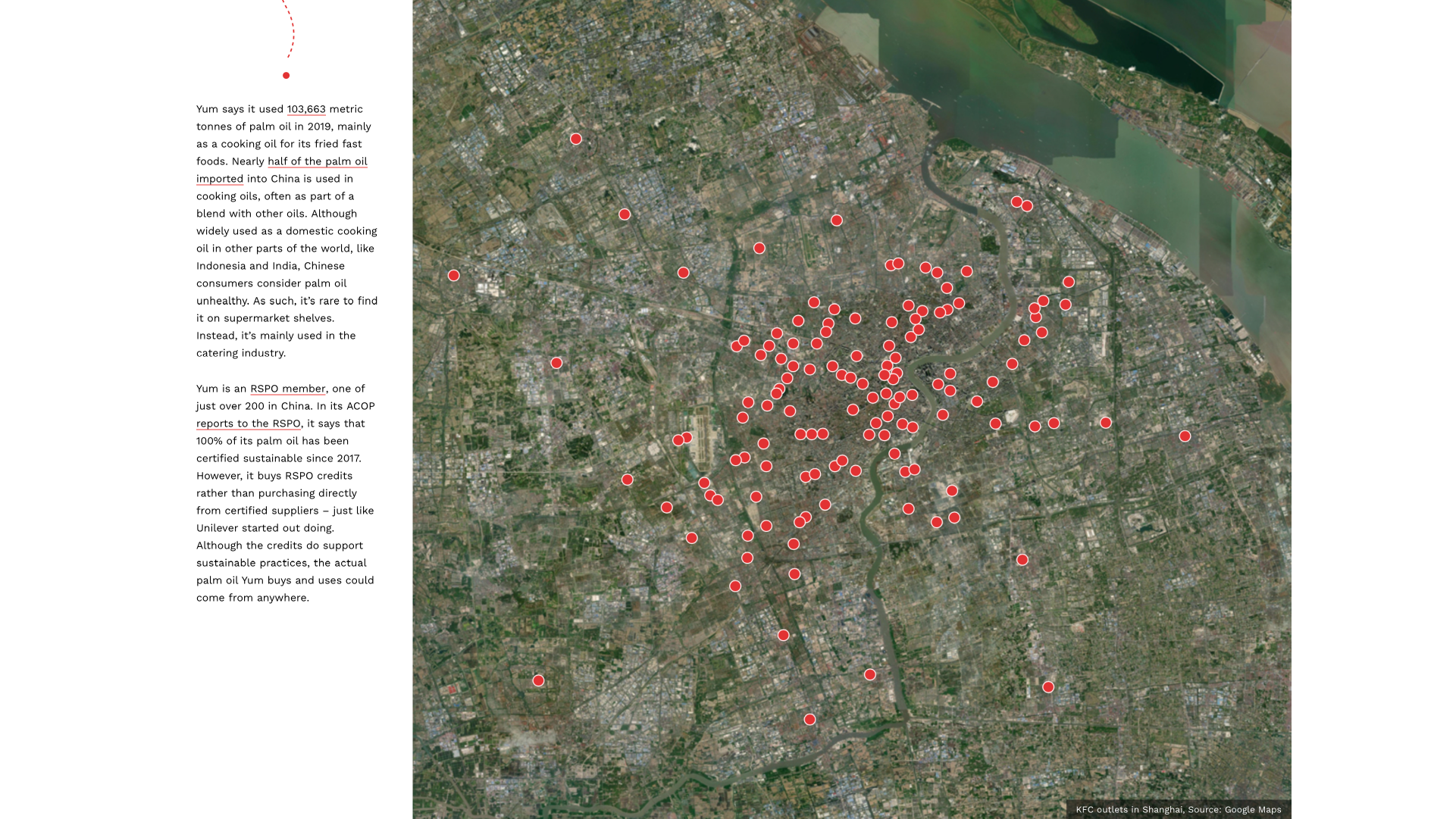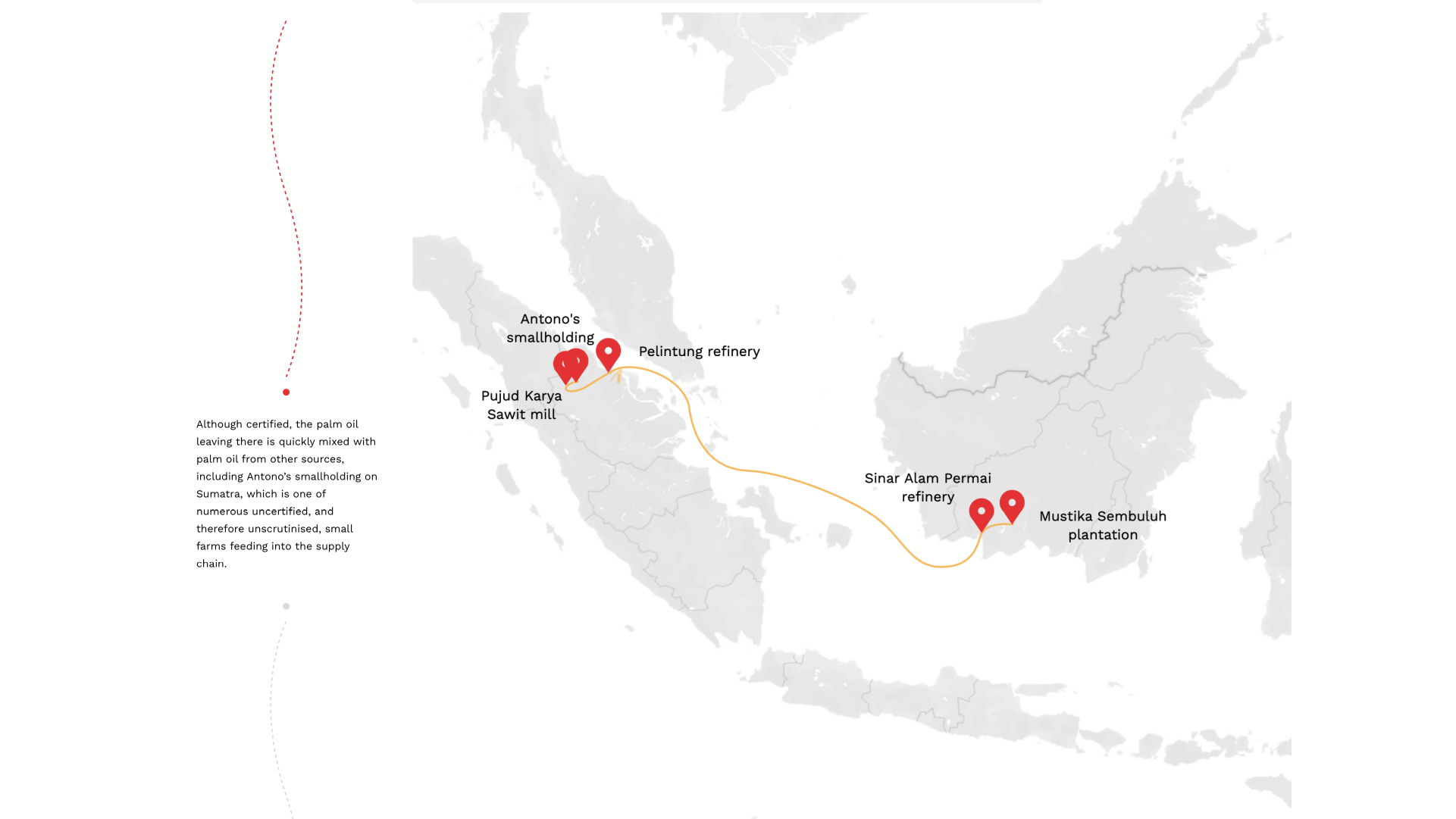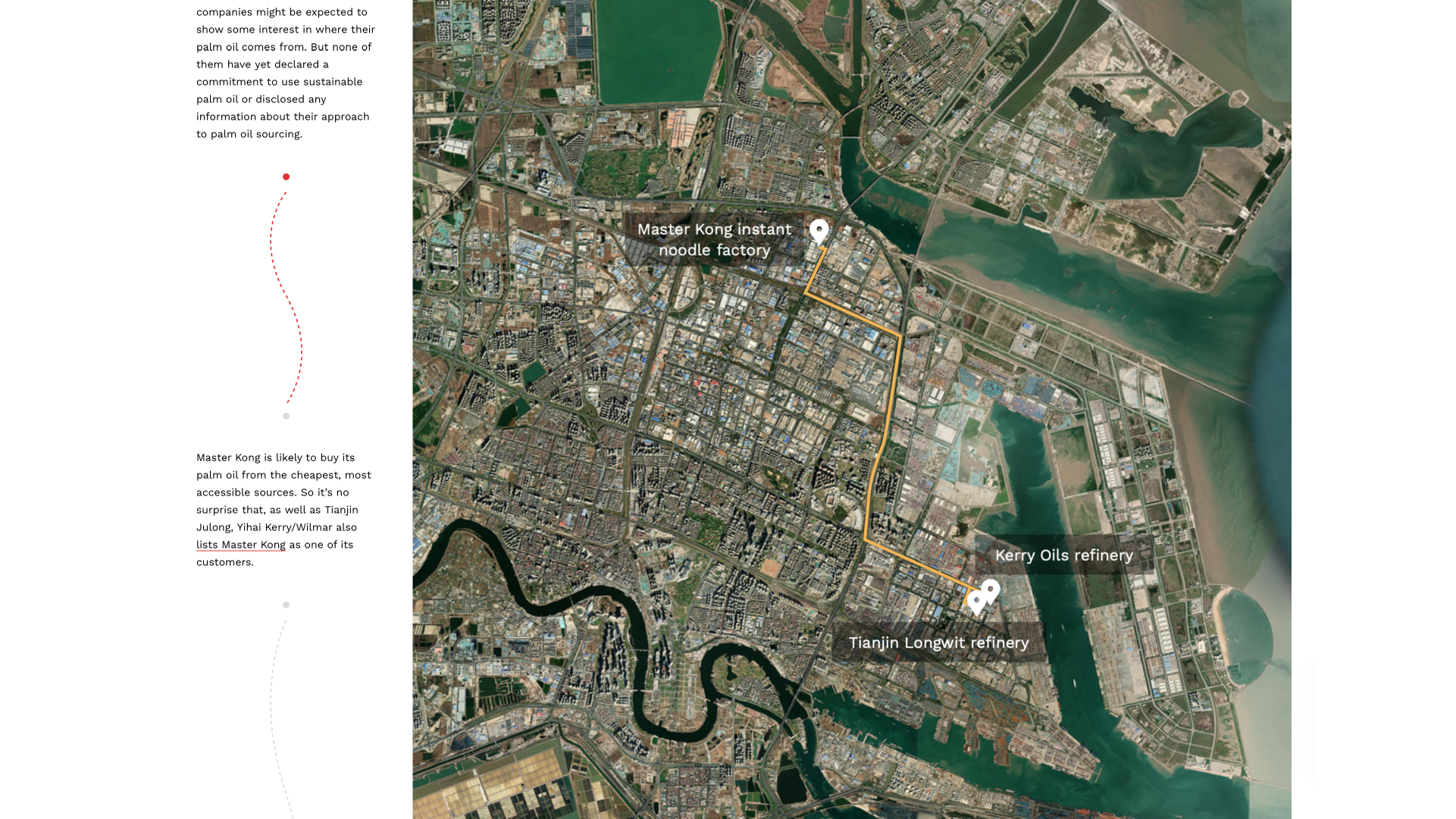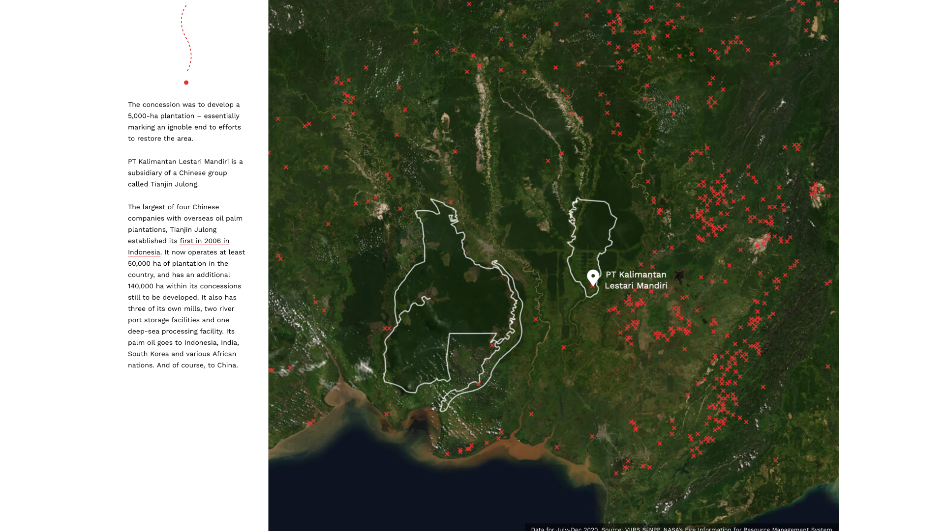 Interactive article about palm oil for China Dialogue. This project utilised GIS mapping software to correlate data points to geographic locations.